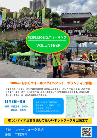 宇都宮市から日光市、鹿沼市、栃木市を通り、小山市がゴールになる約100kmを歩くイベントです。