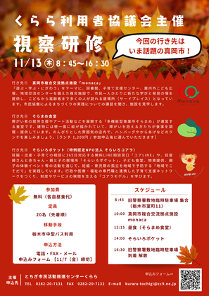 市民の居場所(サードプレイス)と市民協働の拠点をめざした複合交流拠点施設「monaca」、障がい者の就労支援やアート活動を展開する「そらまめ食堂」、妊産婦さんと赤ちゃん・親と子の居場所「そらいろポケット」の3か所を視察します。